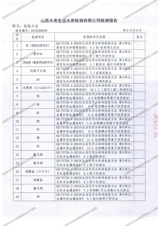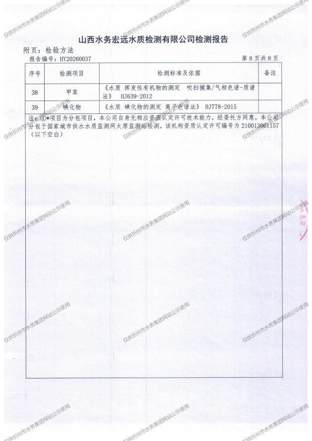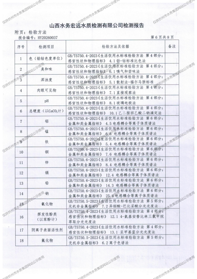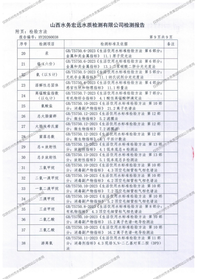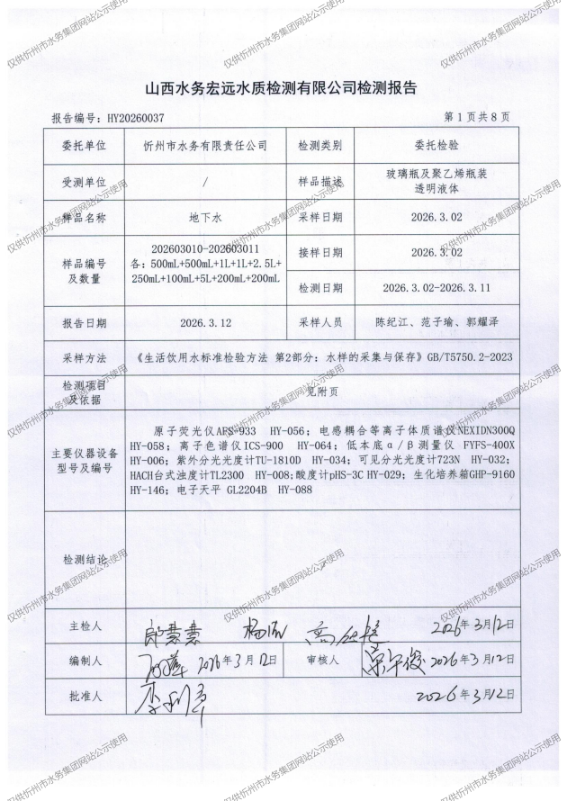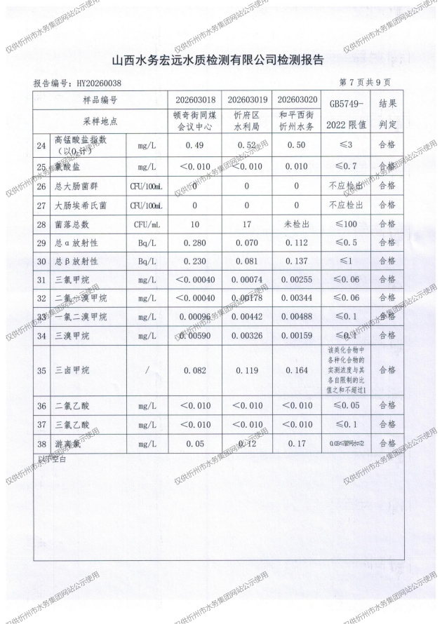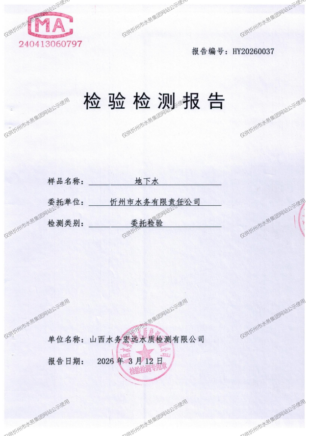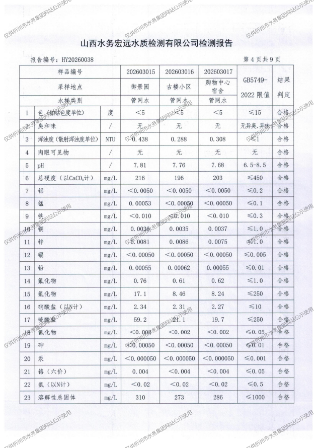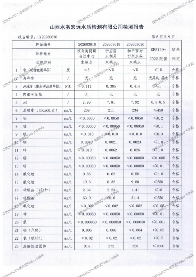 忻州城區(qū)公共供水水源水、出廠水、管網(wǎng)水、管網(wǎng)末梢水2026年3月份水質(zhì)信息公示