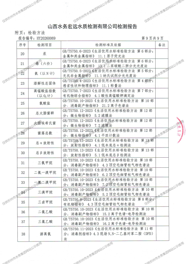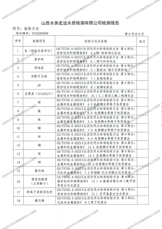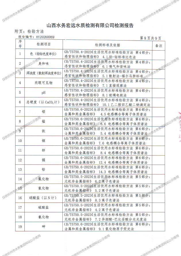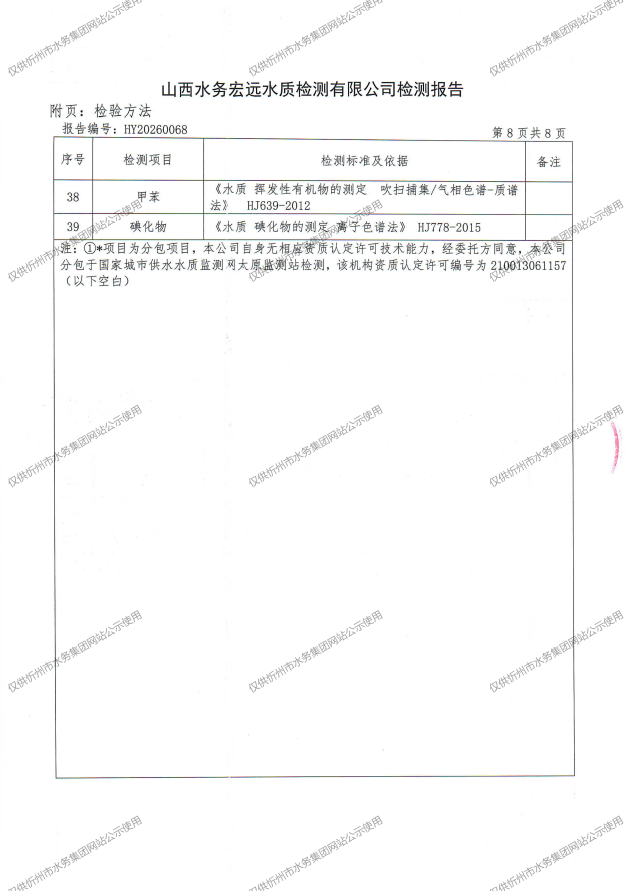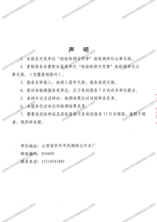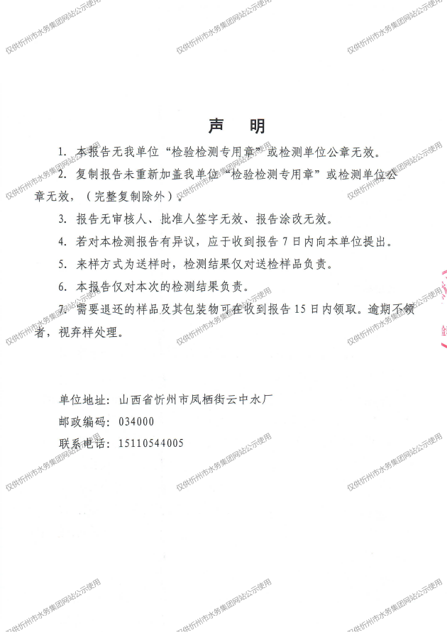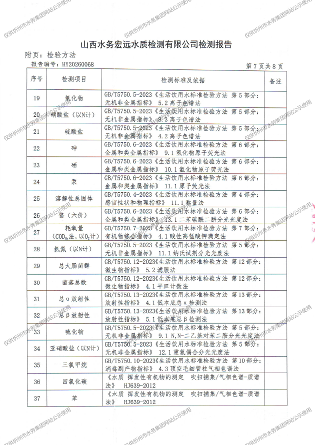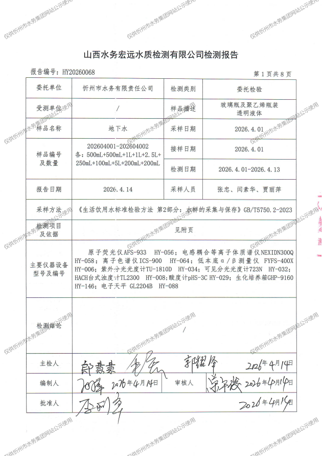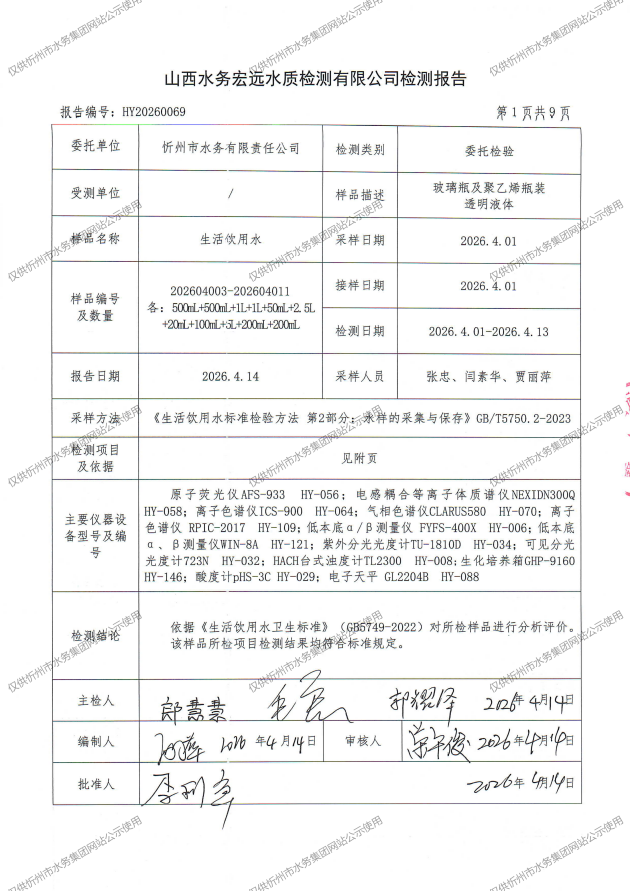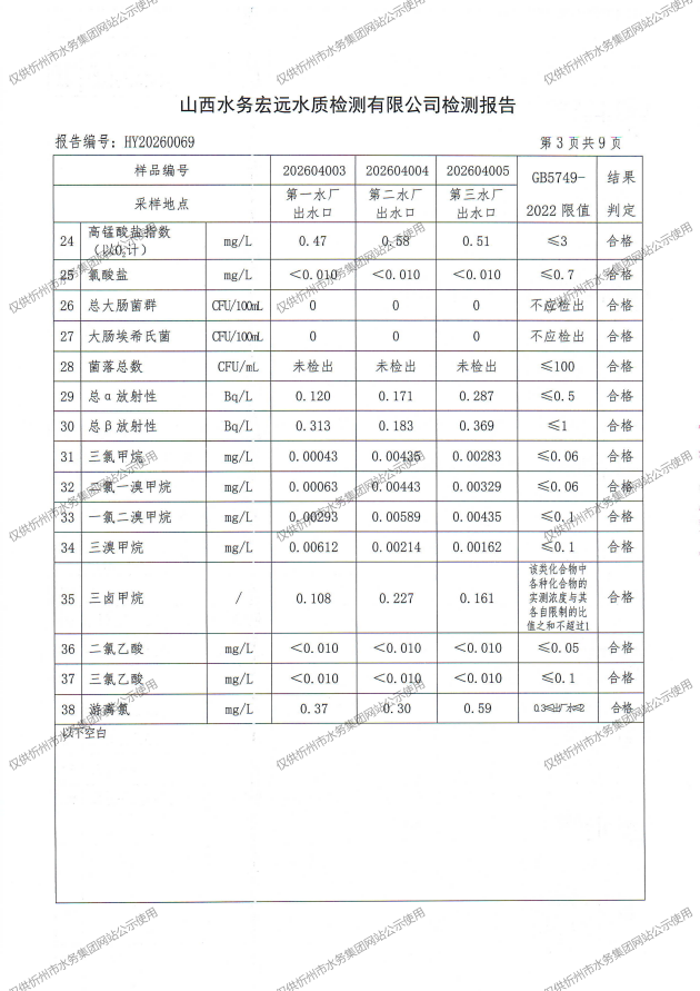 忻州城區公共供水水源水、出廠水、管網水、管網末梢水2026年4月份水質信息公示